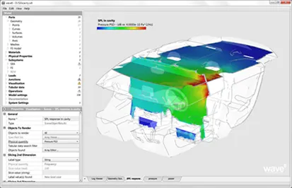 Acoustic Finite Elements delve into the behavior of sound in confined acoustic settings, especially those with high surface-to-volume ratios. Utilizing Wave6, you can effortlessly model these environments by automating the process of extracting volumes, constructing volume meshes, assigning attributes, and analyzing acoustic responses. Furthermore, you can seamlessly import pre-existing models from other simulation software.